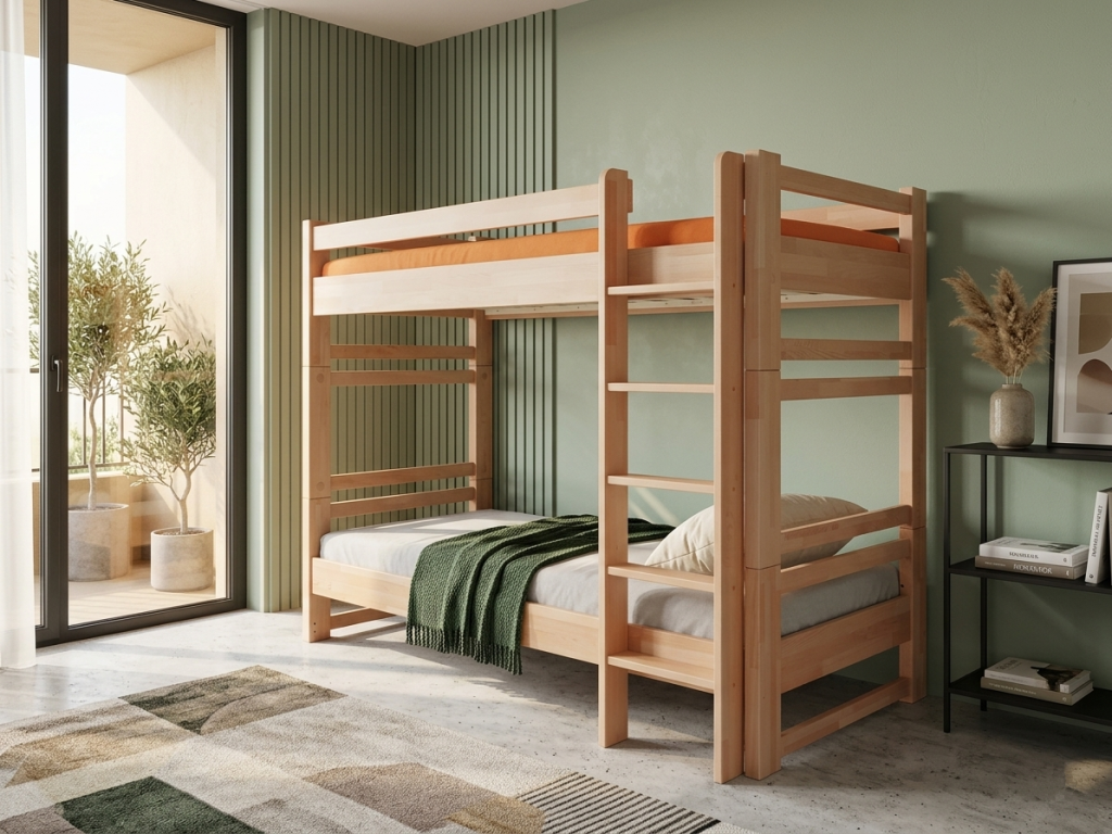 - výška uložení roštu: 27cm dole, 141,5cm nahoře Pro dodržení bezpečnosti je nutné použít laťový rošt a matraci s maximální tloušťkou 15cm. Prostor mezi lůžky: 100cm