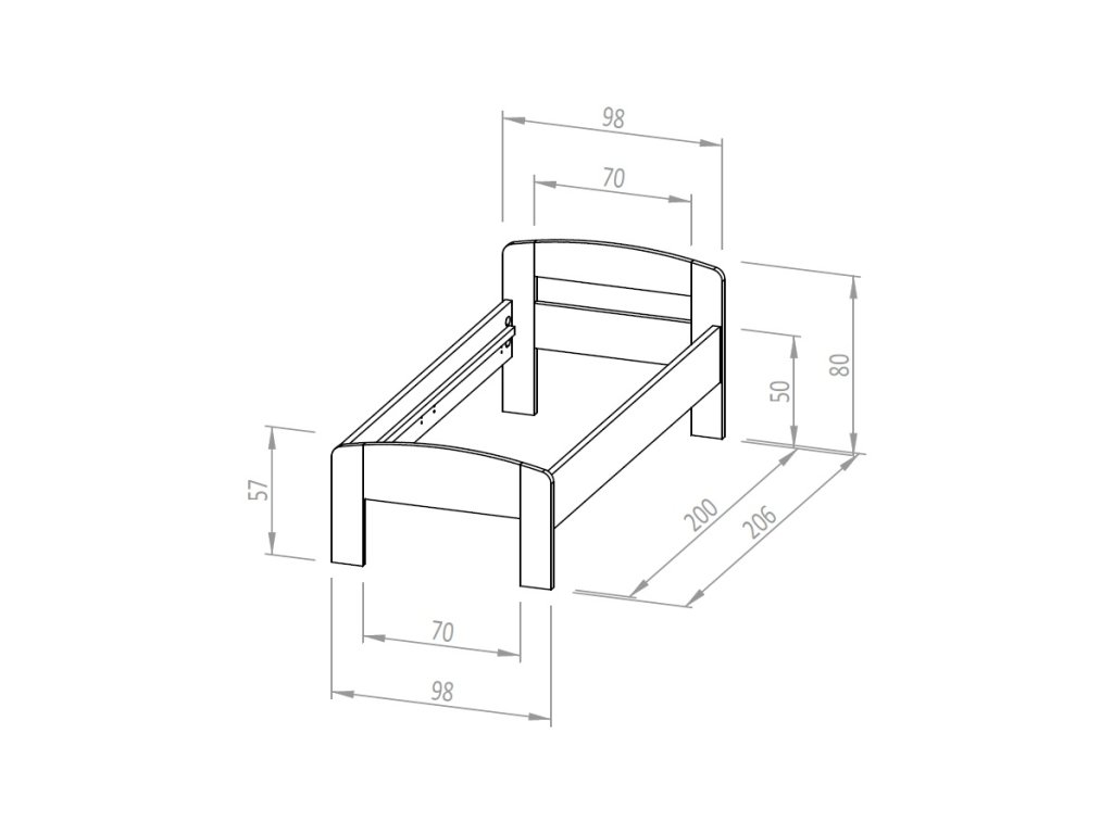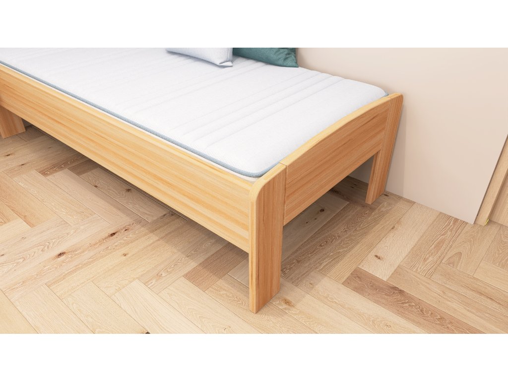 Postel vyrobena z bukového masivu. Nohy z 30mm masivu a vodorovné výplně 30mm. Čela postele a také vnější hrany postele jsou zaoblené. Možnost polohování výšky uložení roštu. Povrchově upraveno bezbarvým UV lakem s vysokou odolností a barevnou stálostí s možností moření.