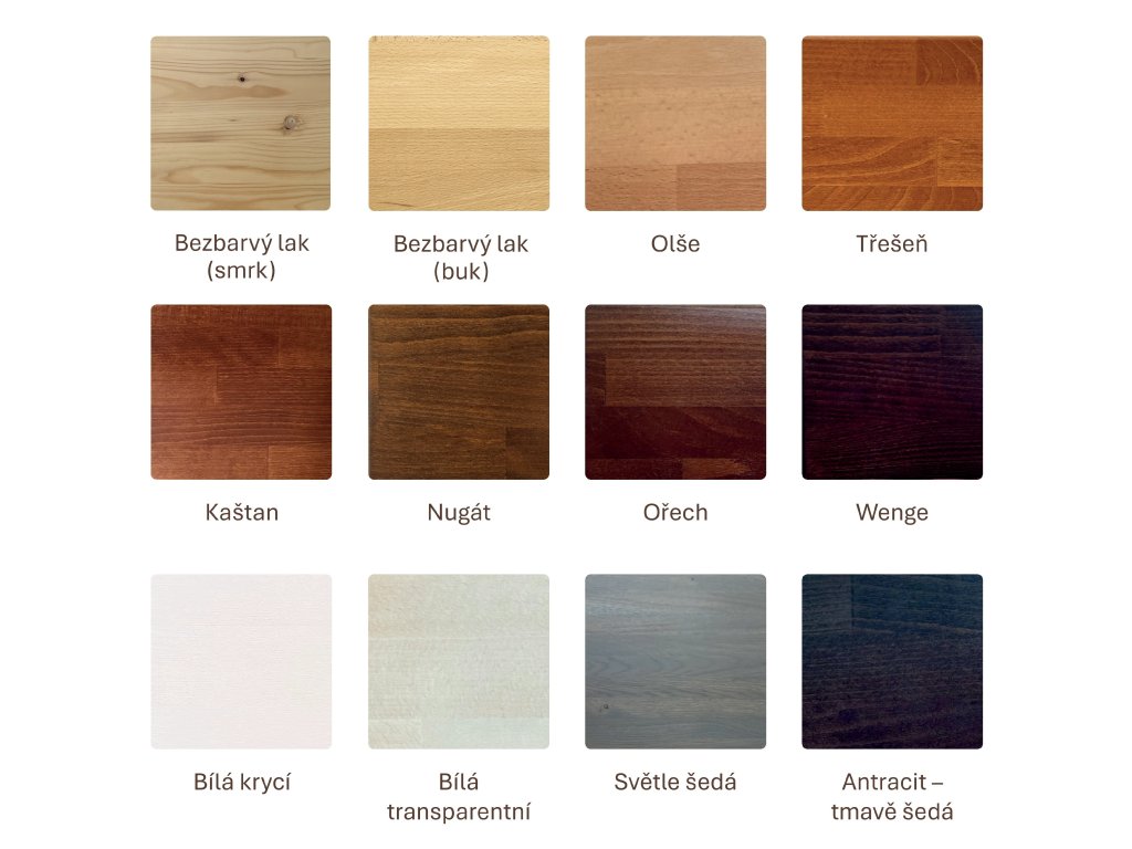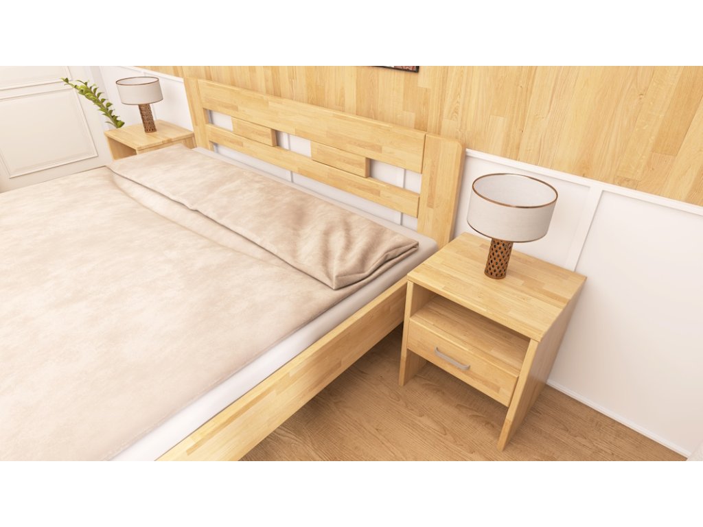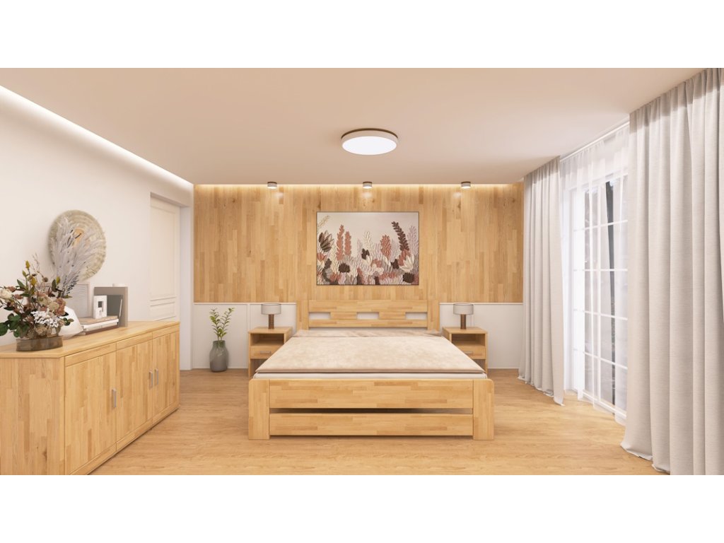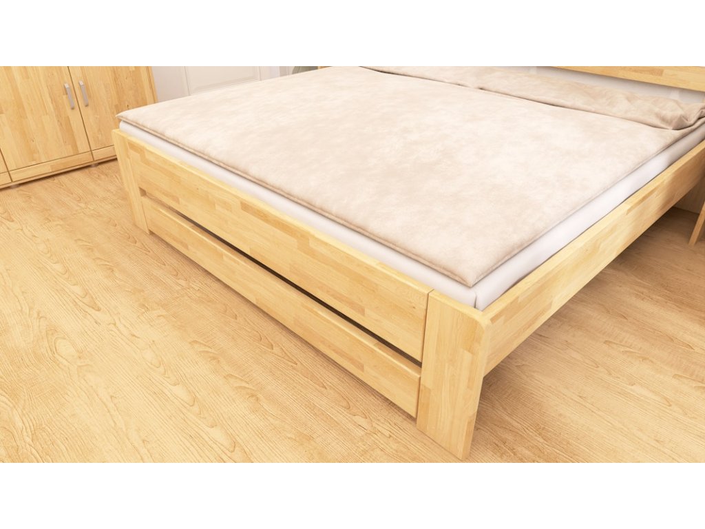 Postel vyrobena z bukového masivu. Nohy z 30mm masivu a vodorovné výplně 30mm. Všechny vnější hrany postele zaoblené. Možnost polohování výšky uložení roštu. Povrchově upraveno bezbarvým UV lakem s vysokou odolností a barevnou stálostí s možností moření.