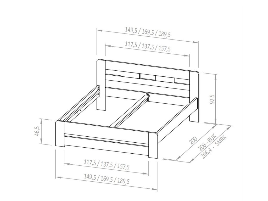 - ložná plocha: 140,160,180 x 200cm